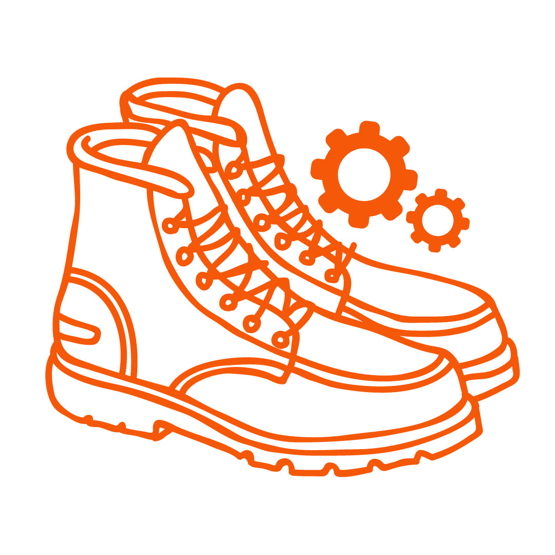 NPB Safety shoes covers the shoe processing processes from A-Z, including cutting, sewing the sides of the shoe, pre-assembly and the final injection process by performing with two injection machines. One in Monodensity PU 24 stations and the other injection machine Bidensite PU 24 stations.